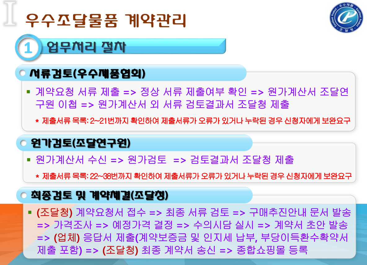 ※ 우수조달물품 계약을 위해서 제출하는 모든 서류는 “사실과 상위없음”을 확인하는 각서