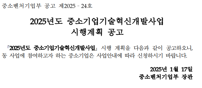 2025년 중소기업기술혁신개발사업 공고확인하고 신청하세요