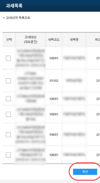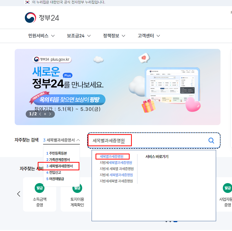 자주차즌 검색에 아뜨는 경유 돋보기 누르고 "세목별과세증명원" 적어 주세요