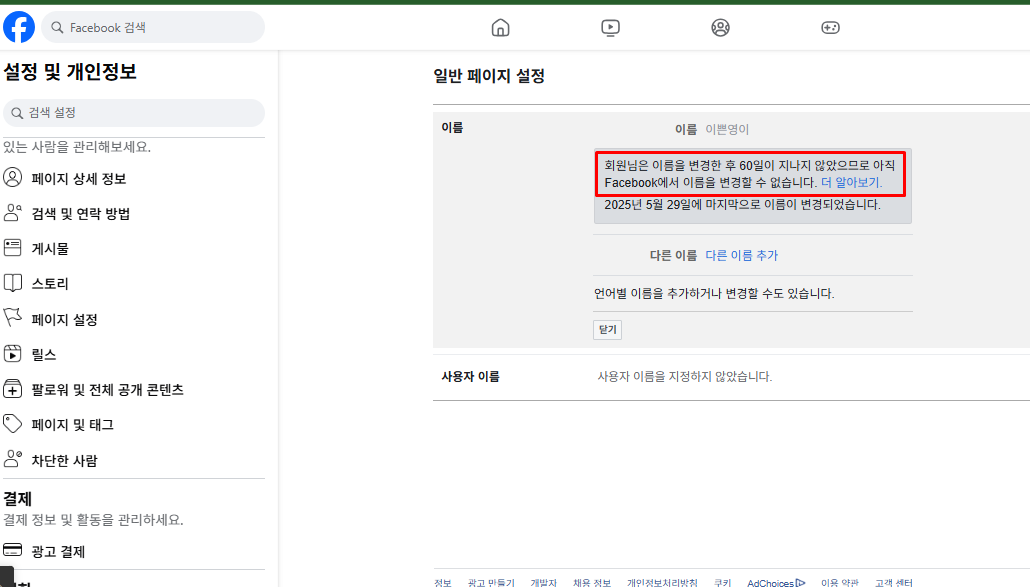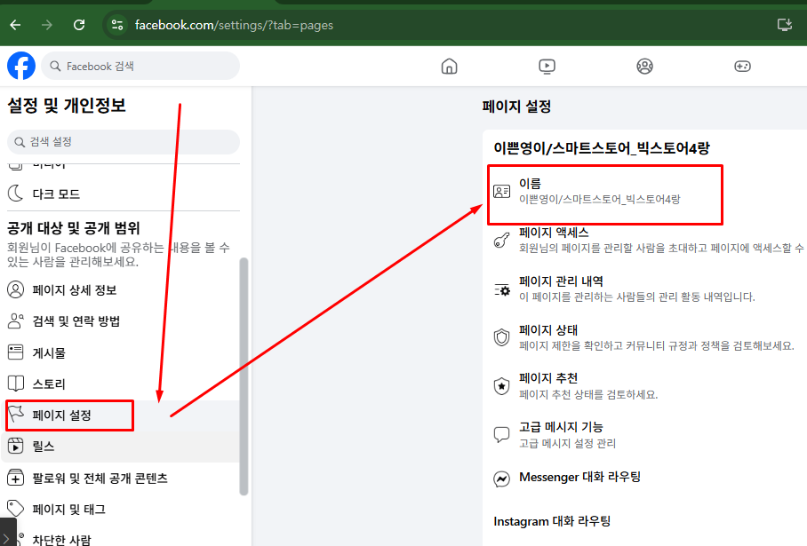 페이스북의 페이지의 이름을 바꾸고 싶어지는 거예요