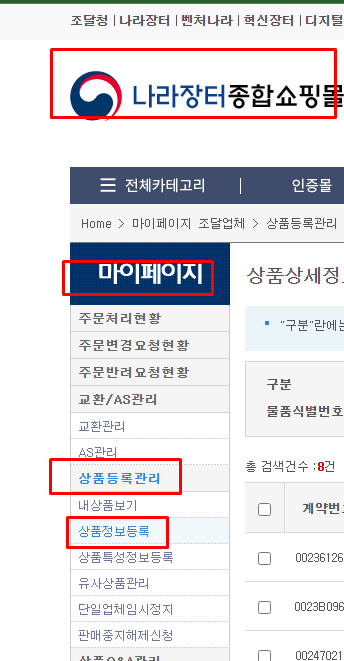 나라장터=>조달업체업무 => 물품 => 계약관리 => 다수공급계약관리=>상품정보등록